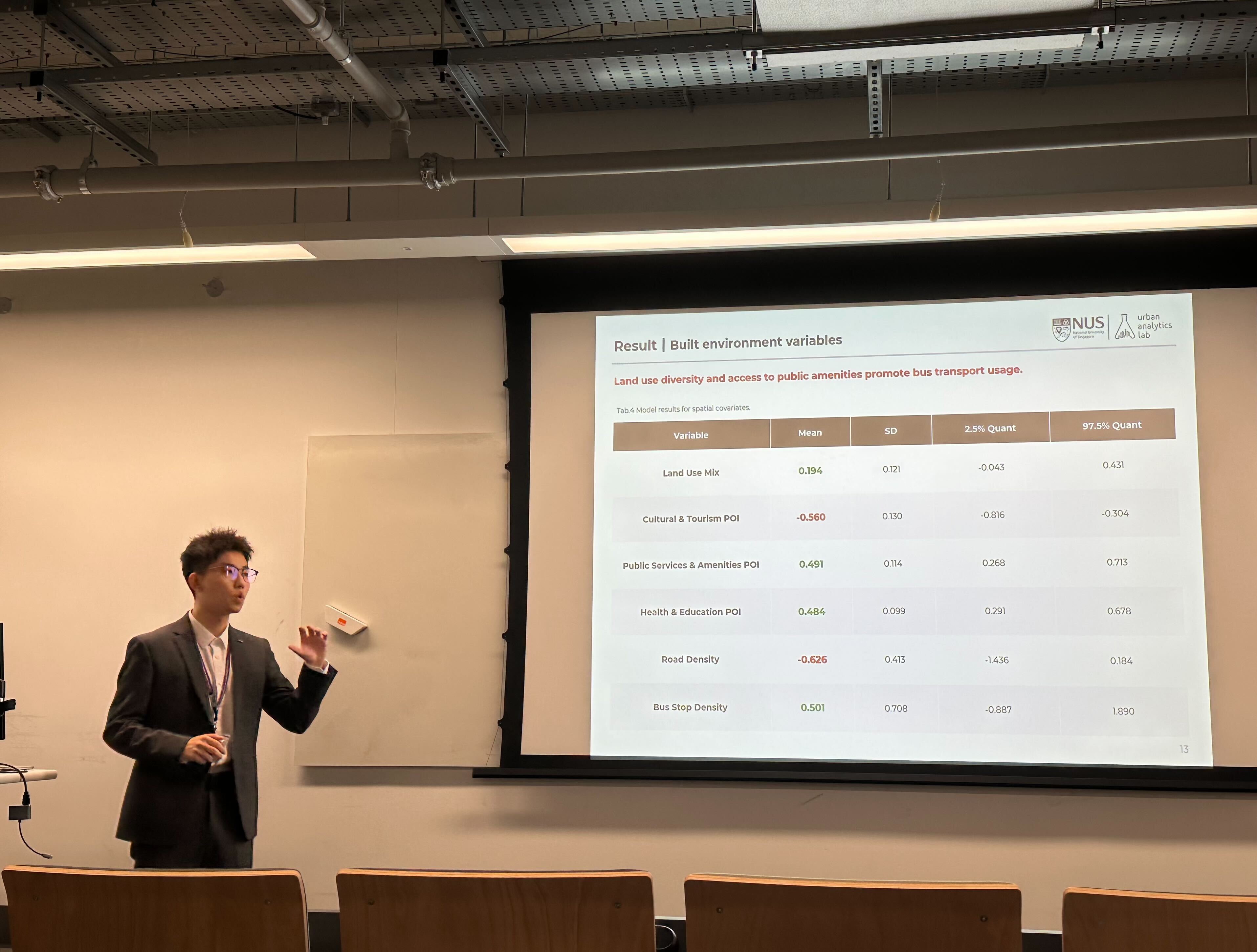 I had the pleasure of attending the 19th International Conference on Computational Urban Planning and Urban Management (CUPUM), hosted by UCL CASA. I presented our Master’s research project, “A Bayesian Spatiotemporal Framework for Explaining Bus Ridership Dynamics in Singapore”, developed in collaboration with Haixiao Liu, Lingsheng Lan, Yu He and supervised by Filip Biljecki, during the Smart Mobility session. I’m grateful for the thoughtful questions and feedback, which made the experience motivating and inspiring!